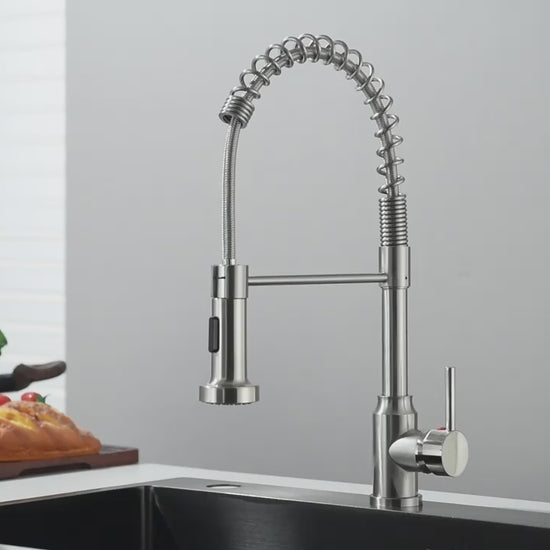 This luxury kitchen and laundry faucet features a striking high-arc design paired with a versatile pull-down sprayer, blending refined aesthetics with exceptional functionality. Its elegant form enhances sophisticated spaces, while the flexible sprayer provides precise control for effortless cleaning and rinsing tasks. Durable and stylish, this faucet transforms everyday chores into a seamless, upscale experience.